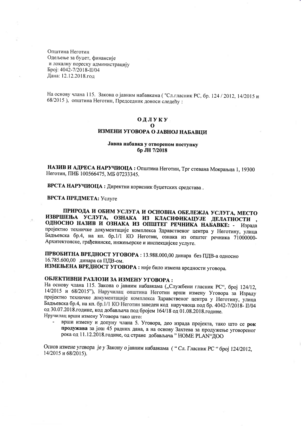Posle dugo natezanja oko početka izrade projektne dokumentacije raspisana je javna nabavka za izradu projektne dokumentacije, posao je dobila firma „HOME PLAN“ iz Beograda za 16.785.600,00 dinara sa rokom izrade do 11.12.2018. godine. Ugovor je kasnije promenjen i rok produžen za 45 dana.